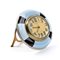 Cassa ovale in metallo e smalti guilloché nei toni del blu e dell'azzurro, quadrante dorato con numeri arabi e sfere luminescenti riportante l'iscrizione "Esperia".