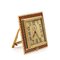 Luga: Orologio sveglia da tavolo Art Déco in metallo dorato e smalti policromi. Svizzera, anni '20 - '30