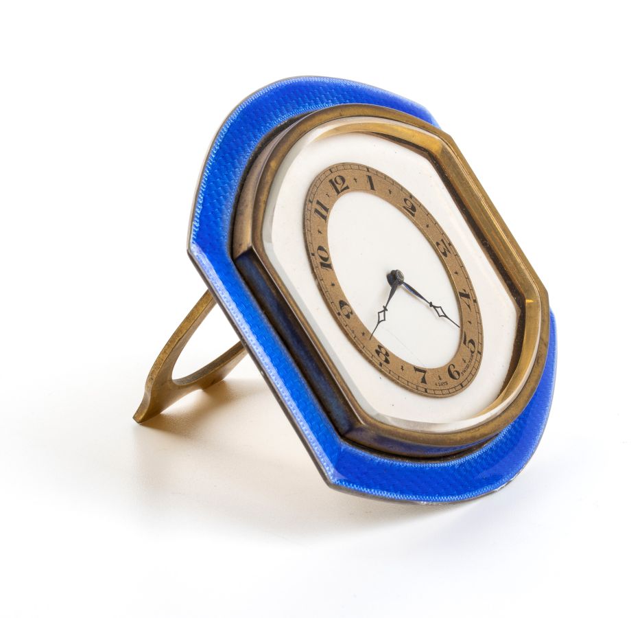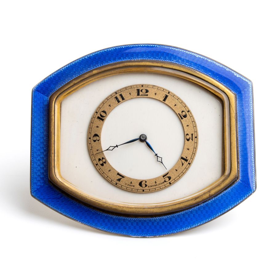 Charles S. Green & Co Ltd: Orologio da tavolo Art Déco in argento e smalto guilloché. Birmingham 1925