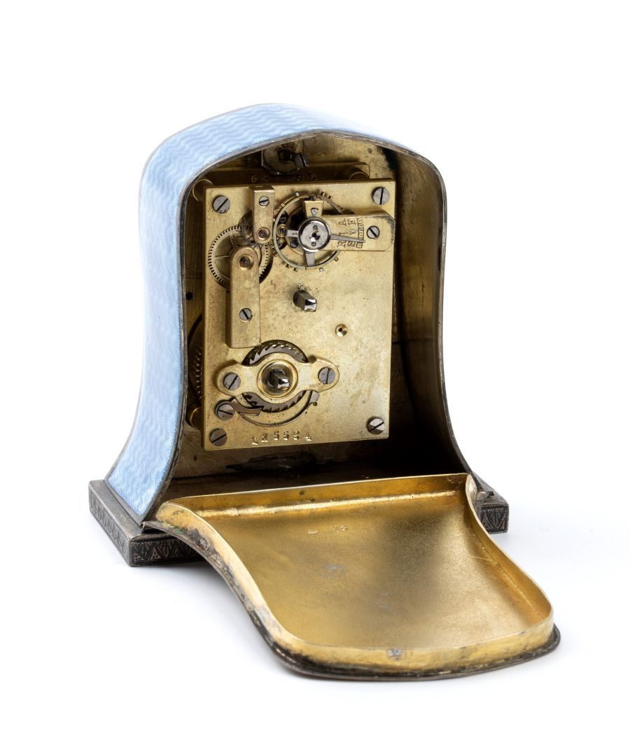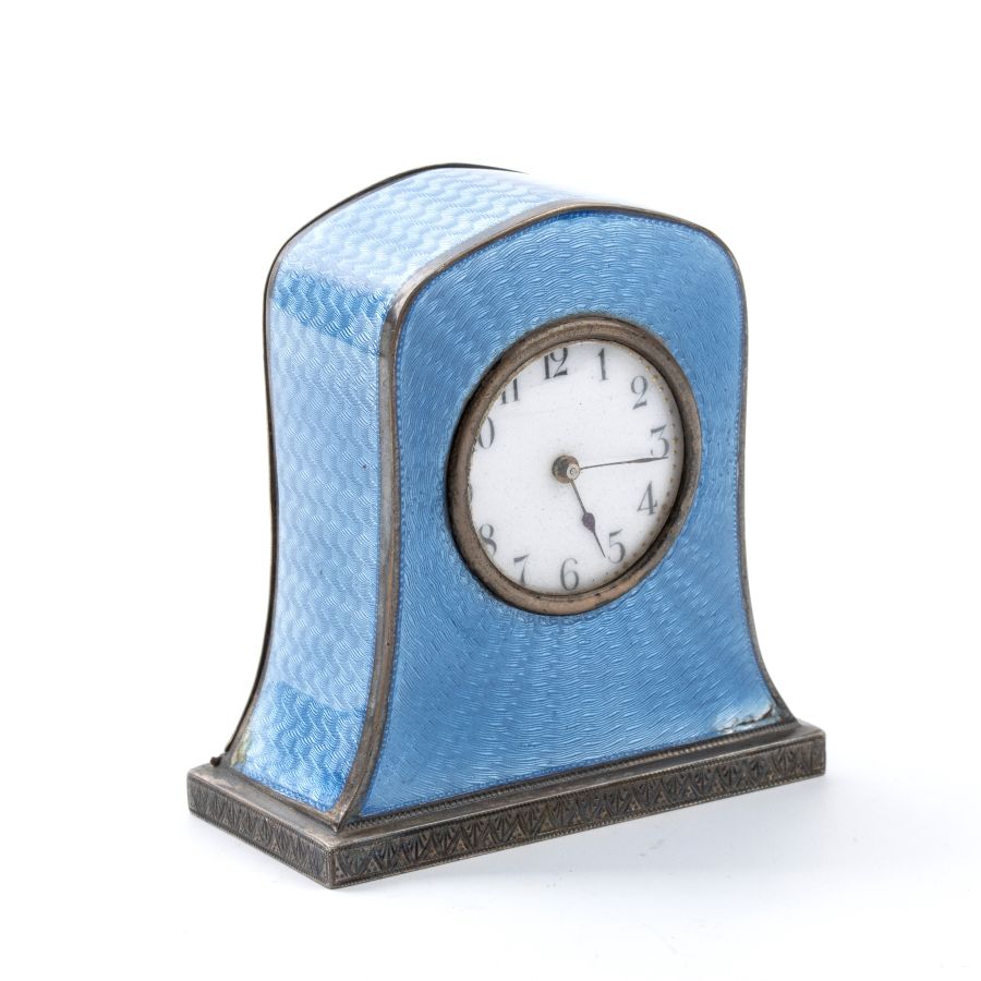 Orologio da tavolo Art Déco in argento e smalti. Svizzera, anni '20 - '30