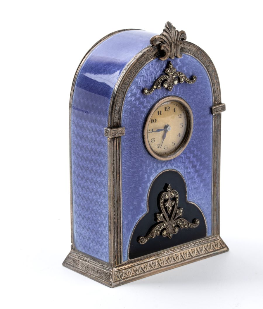 Lot 174 | Orologio da tavolo Art Déco in argento e smalti. Anni' 20 - '30