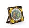 Cassa rettangolare in ottone decorata a motivi floreali con smalti cloisonné policromi, quadrante dipinto con un fauno, numeri romani e sfere nere. Nella parte interna del cavalletto le iscrizioni "C.H - Depose - 259 - France".