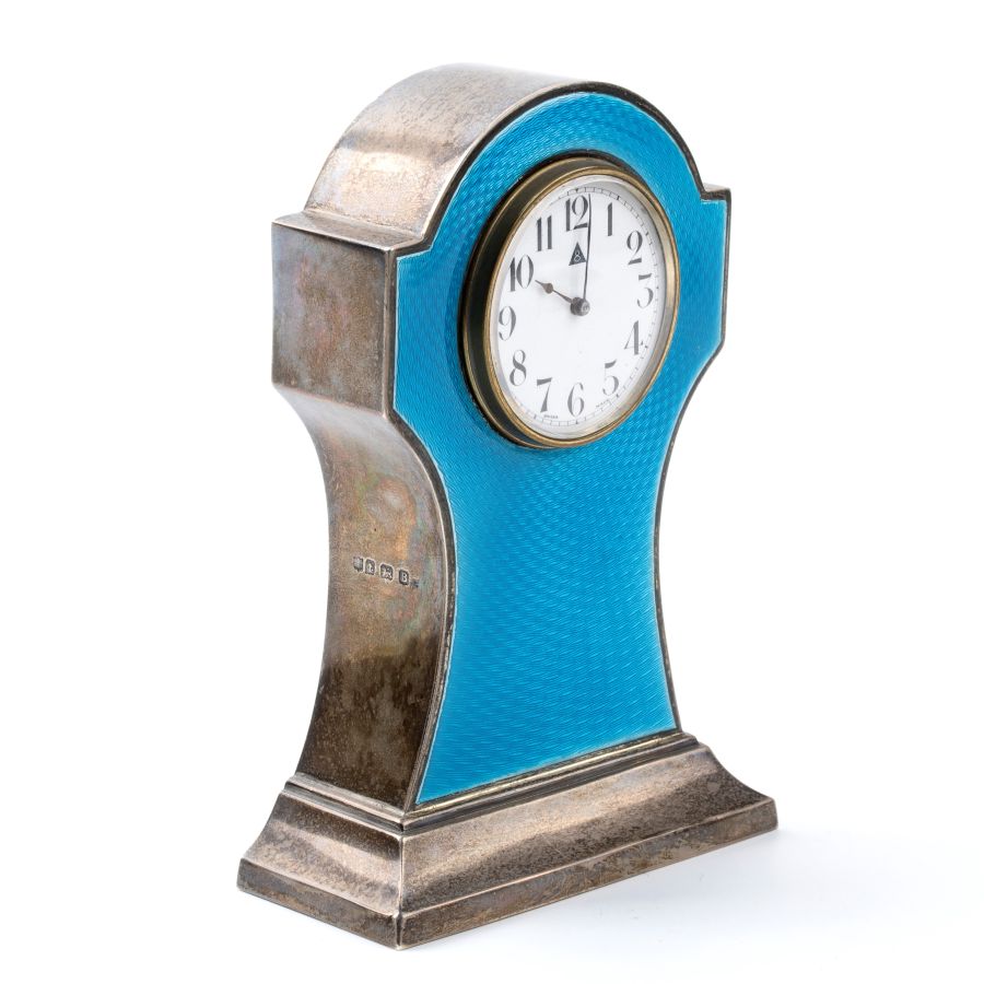 Lot 189 | Orologio da tavolo Art Déco in argento e smalti. Birmingham, 1926