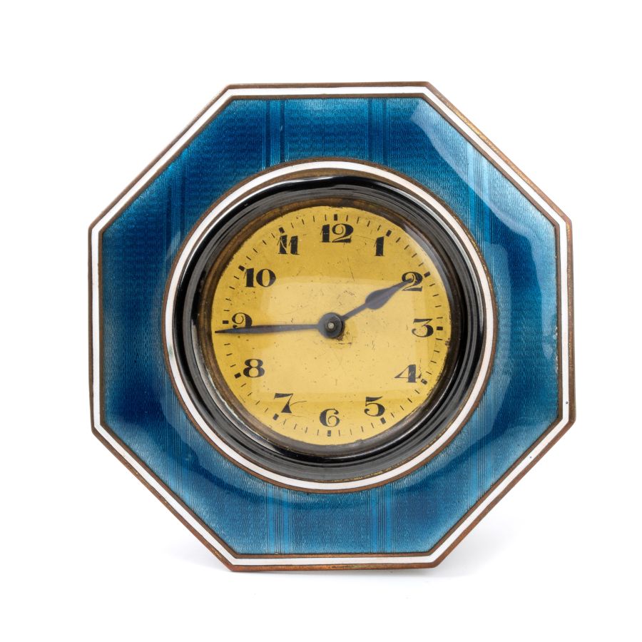 Orologio da tavolo Art Déco in metallo e smalti. Anni '20 - '30