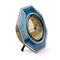 Cassa ottagonale in metallo con smalti guilloché nei toni del blu, quadrante dorato con numeri arabi e sfere nere. Nella parte posteriore della cassa in ottone un logo non identificato.