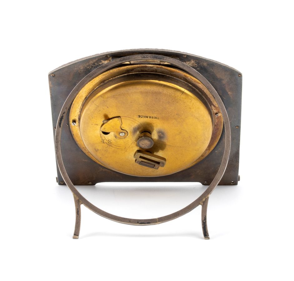 Orologio da tavolo Art Déco in metallo dorato e smalti. Anni '20 - '30
