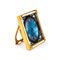 Cassa di forma quadrata con smalti perimetrali beige, quadrante in smalto guilloché nei toni del blu con decori floreali, numeri arabi e sfere luminescenti riportante l'iscrizione "8 days". Sul bordo esterno "BREVETE", sul cavalletto "METAL DORE - SV - 15".