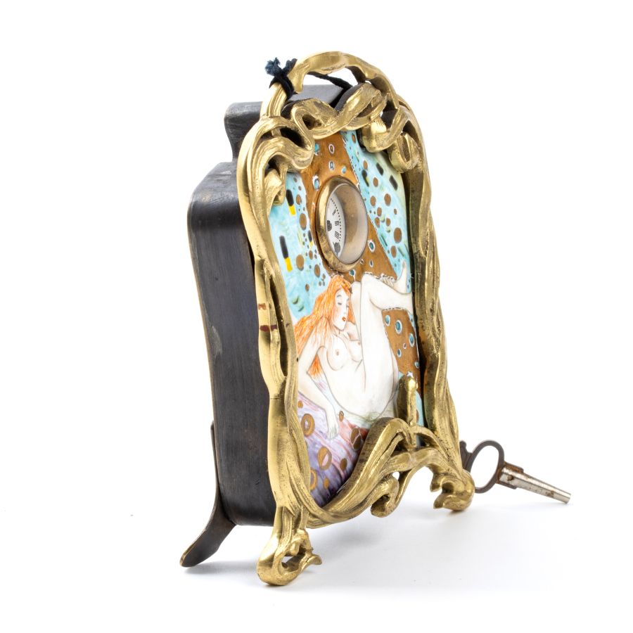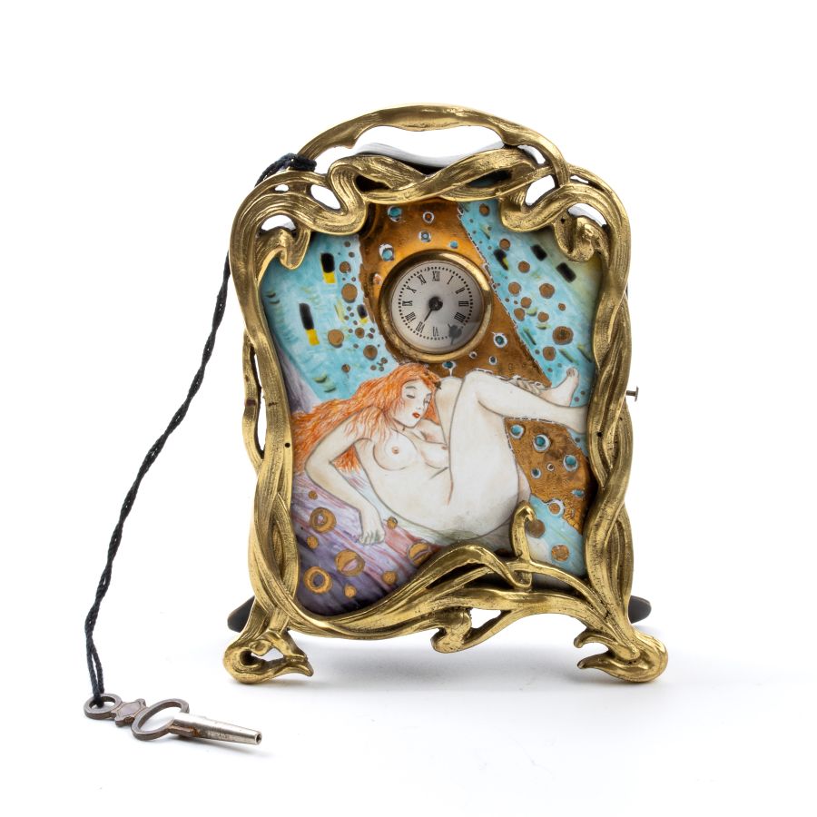 Orologio da tavolo Art Nouveau con smalti. Inizio XX secolo