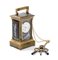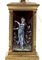 Cassa a "cappuccina" in metallo dorato smaltato in policromia con figure femminili, quadrante bianco con numeri arabi e sfere nere. Rimessa delle ore e carica a chiave. Nella parte sottostante e sul movimento il numero "555". Nella parte interna dello sportellino la scritta "Moege Ihnen mur glueckliche Stunden reigen!" (Tedesco per: "Che tu possa avere ore felici!").