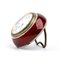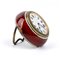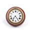 Cassa circolare in metallo dorato e smalti guilloché nei toni del rosso con cornici bianche, quadrante in smalto bianco con numeri romani e sfere nere, riportante le iscrizioni "8 Days - Swiss made".