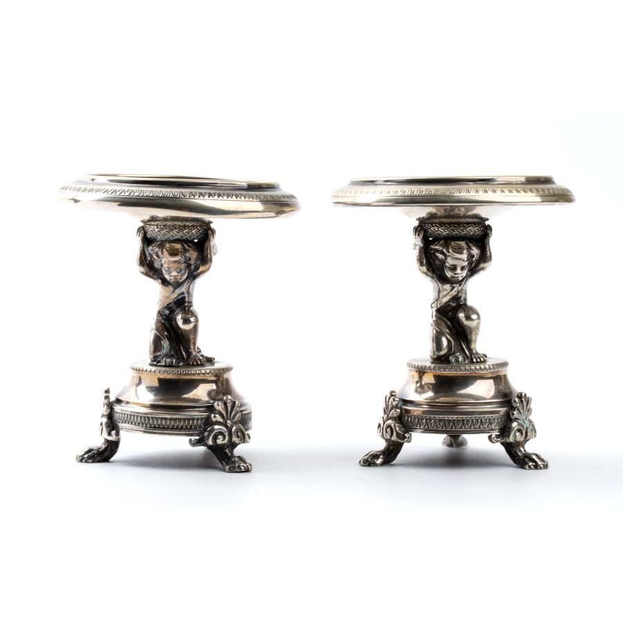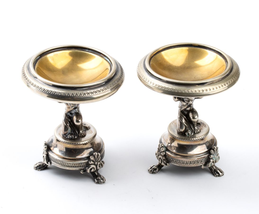 Emanuele Caber: Coppia di saliere italiane in argento. Milano 1812-1850