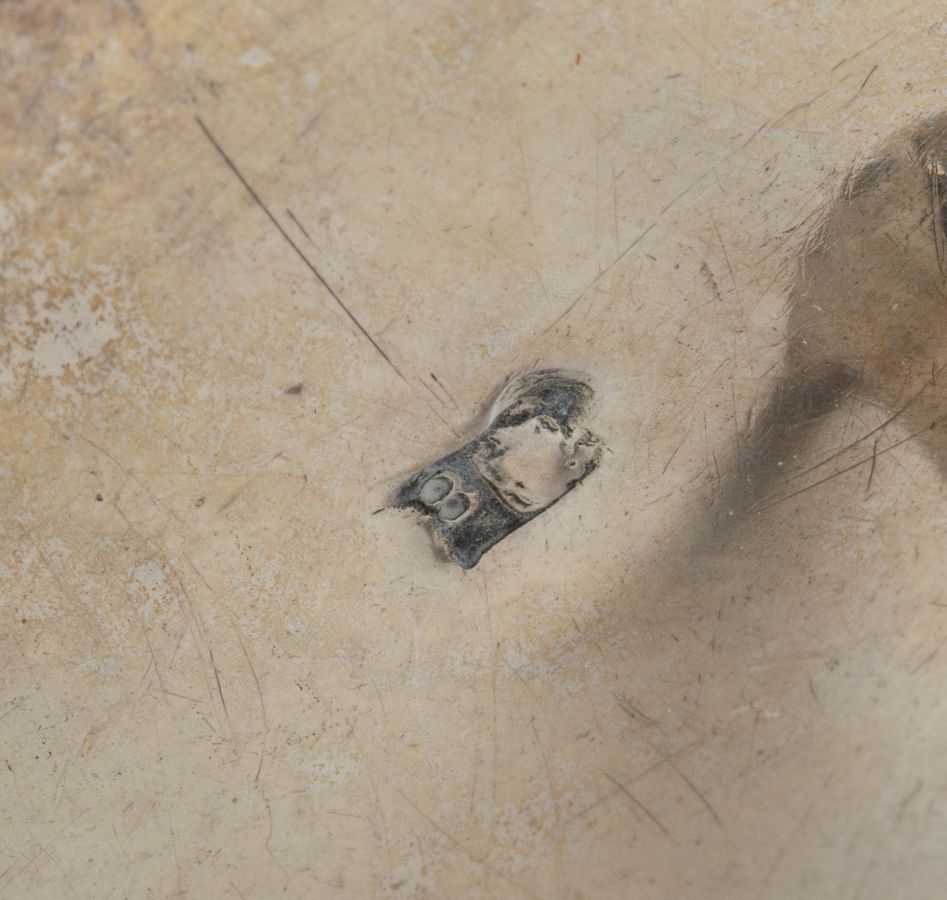 Punzonate con il marchio in uso alla corporazione degli orefici di Napoli per l'argento al titolo di 833/1000 o 10 once, 1832-1872, saggiatore Gennaro Mannara.