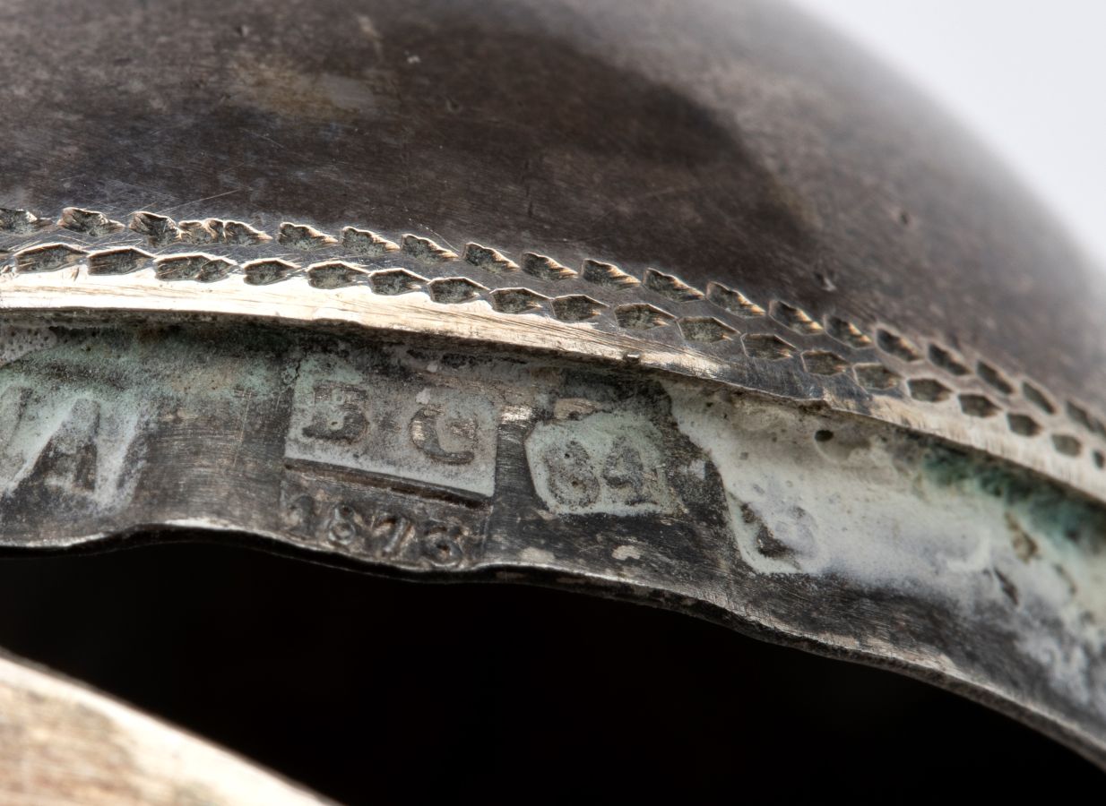 Argento 875/1000, punzonate con i marchi per l'argento al titolo di 84 zolotniks (875/1000) in uso a Mosca nel 1873.
