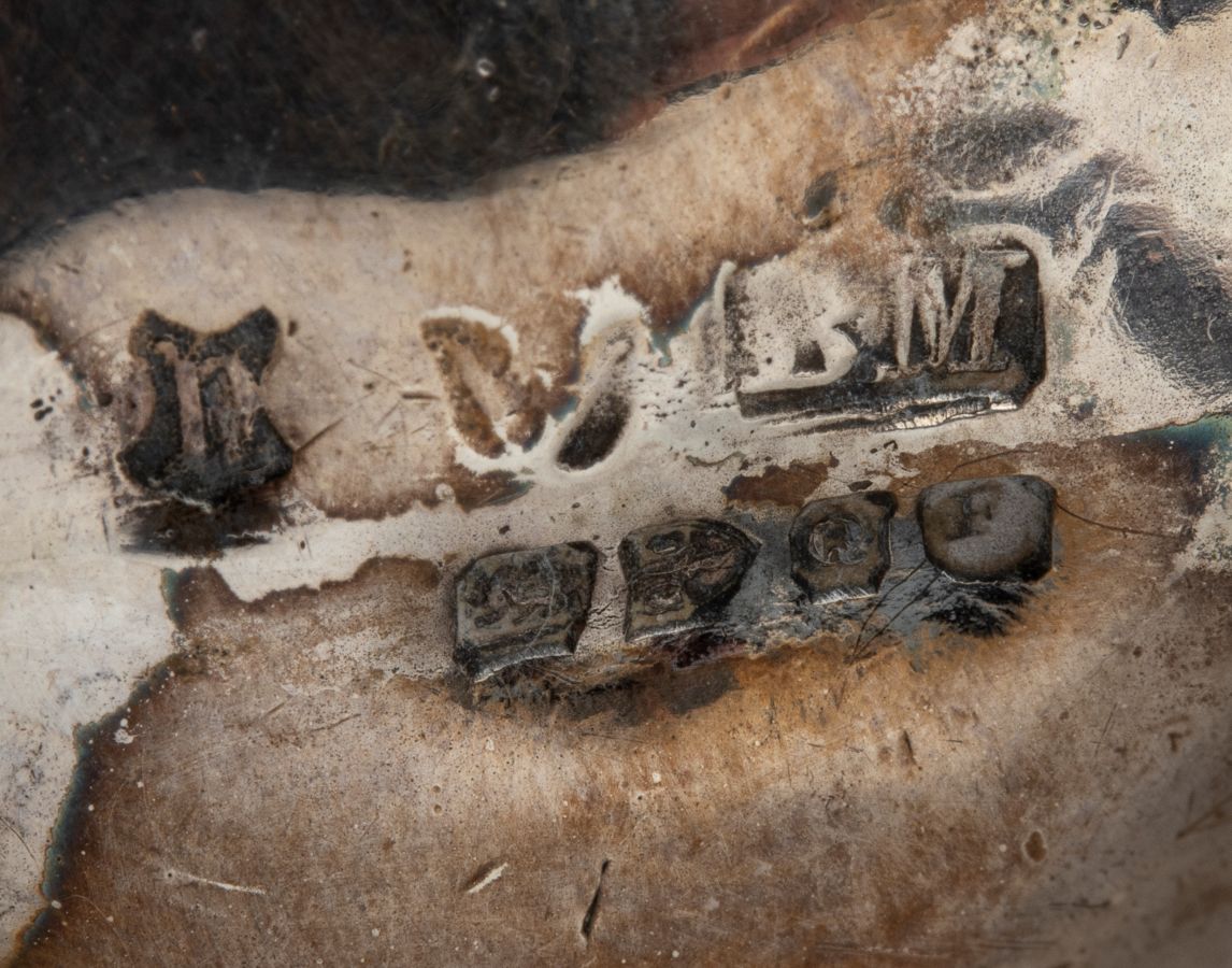 a) marchi in uso ad Hanau, Germania, argentiere Ludwig Neresheimer & Co, con il marchio dell'importatore Berthold Muller e con la serie completa dei marchi di importazione a Chester nel 1899-1900.