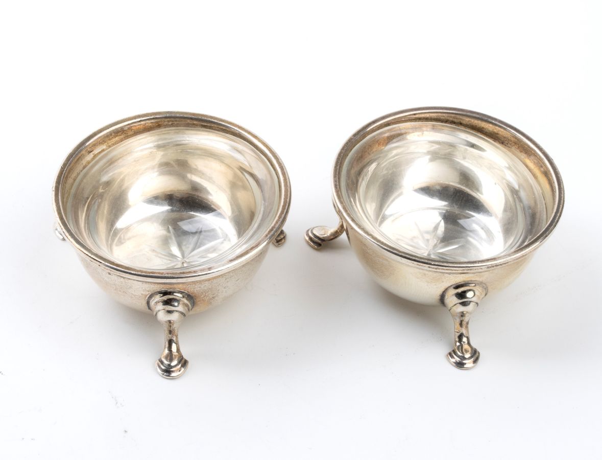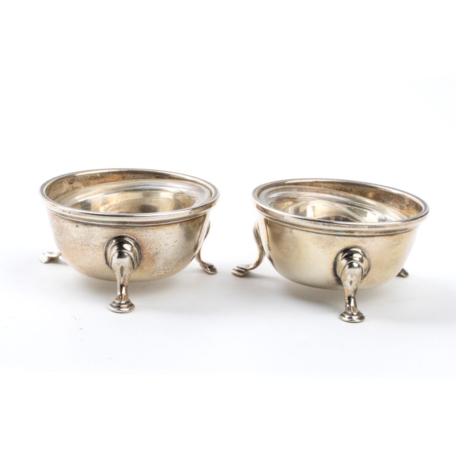 CARTIER: Coppia di saliere in argento e vetro. Inizio XX secolo