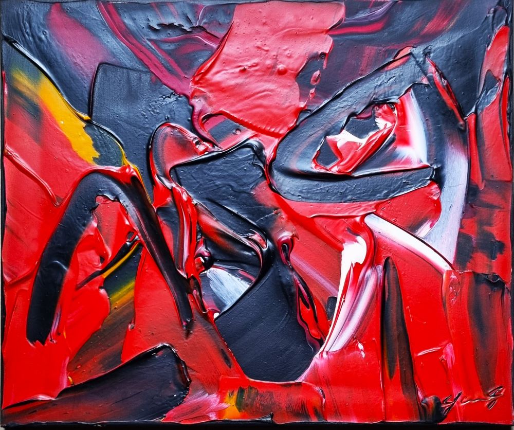 DE LUTTI PIERLUIGI Monfalcone 1959 "Doppio segnale" Olio e tecnica mista su tela cm 60x50. Firmato sul fronte in basso a destra. Al verso titolo, misure e firma. Autentica su foto a cura dell'Archivio Storico De Lutti.