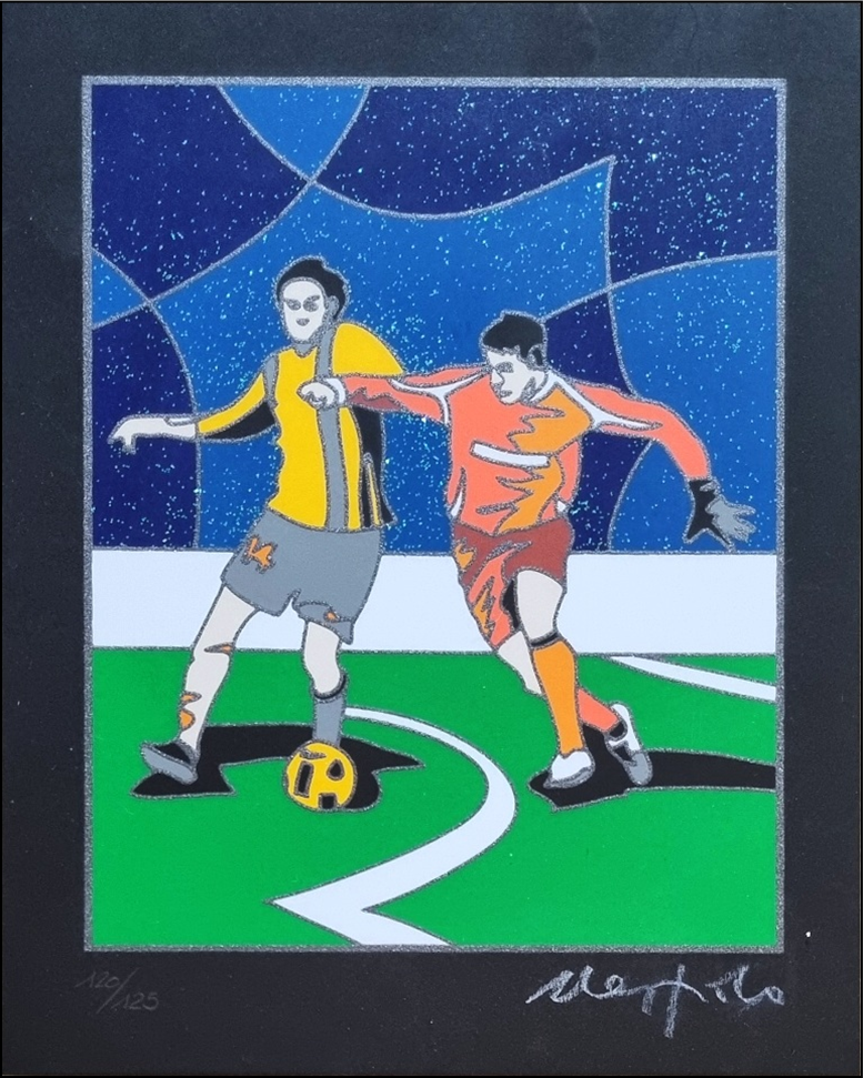 NESPOLO UGO Mosso 1941 "Senza titolo" Serigrafia materica cm 20x25. Firmata sul fronte in basso a destra, tiratura 120/125 a sinistra.