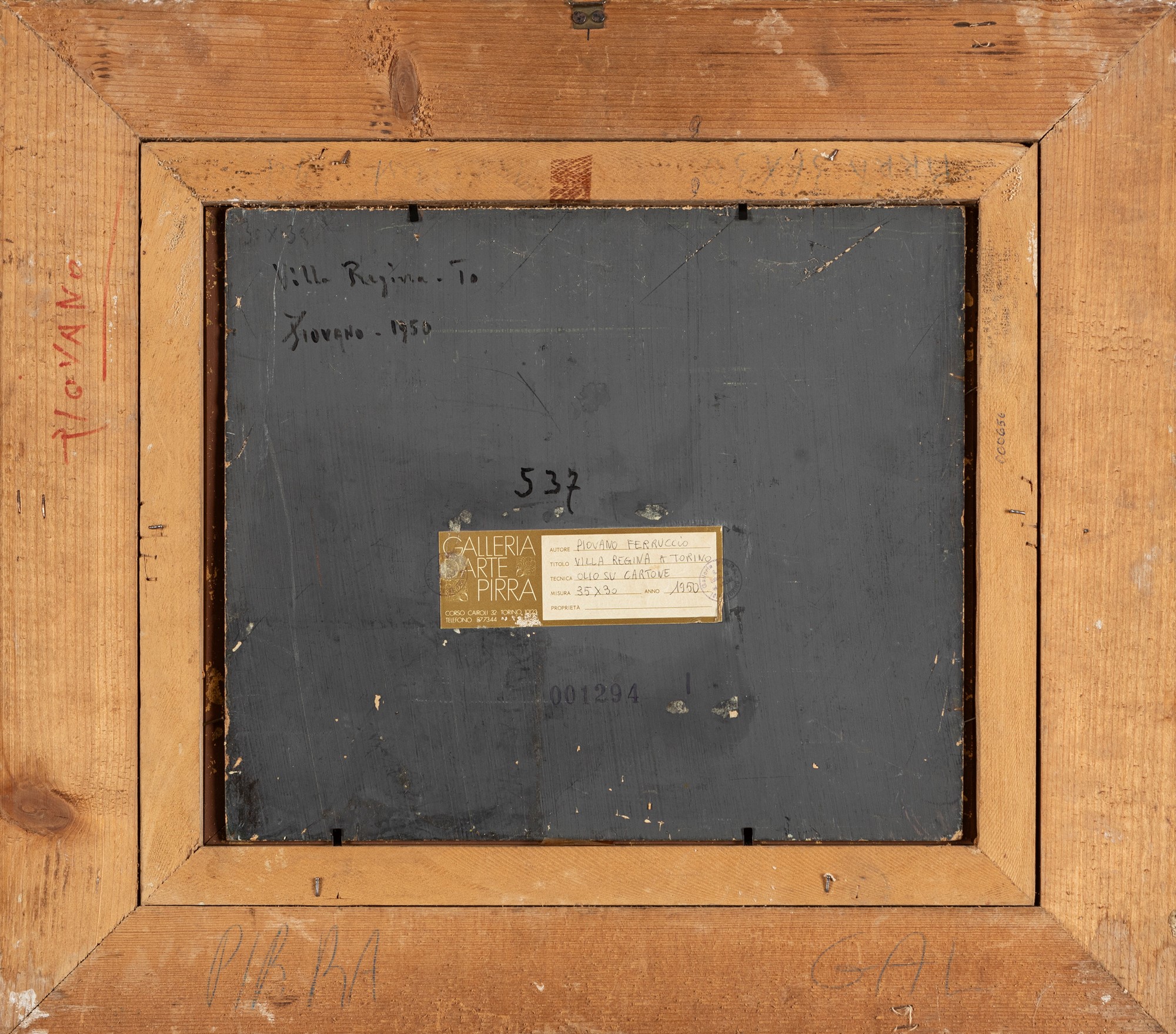 al retro, sul cartone, firmato, titolato e datato; etichetta e timbro della Galleria d'Arte Pirra, Torino
