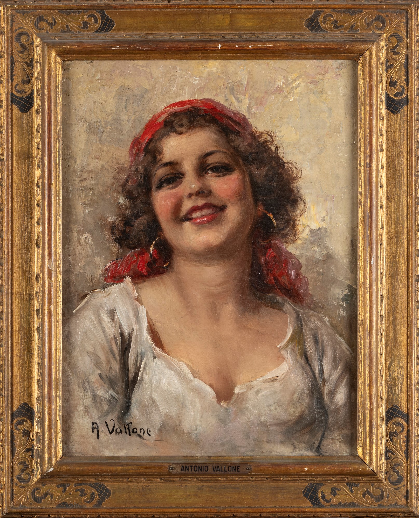 Antonio Vallone (attivo a Napoli nel secolo XX) - Ritratto di giovane con foulard rosso