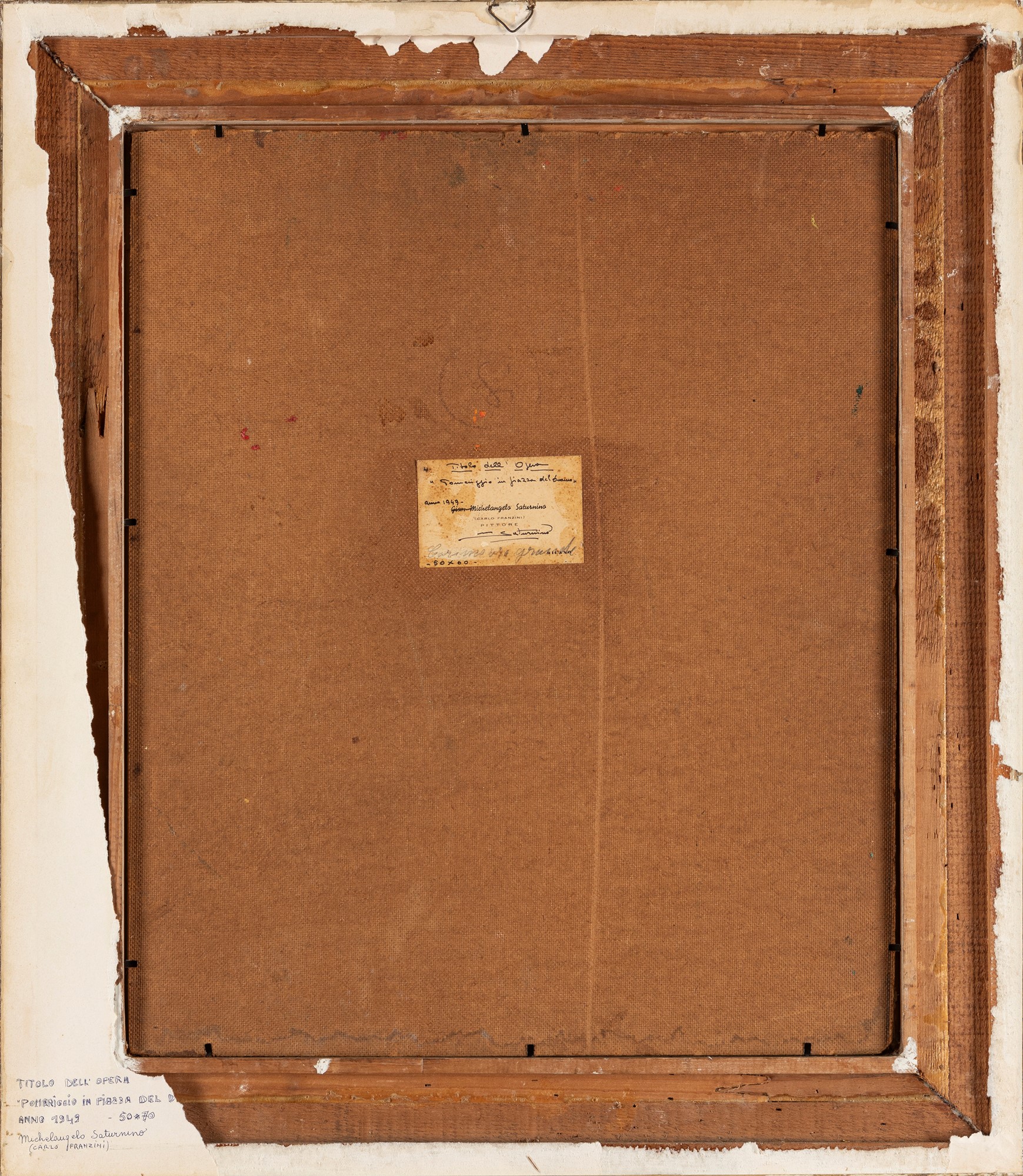 al retro, etichetta del pittore sulla masonite