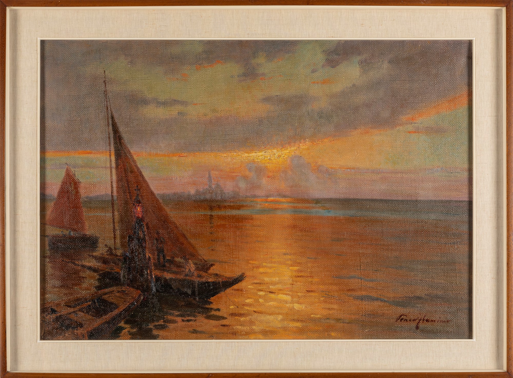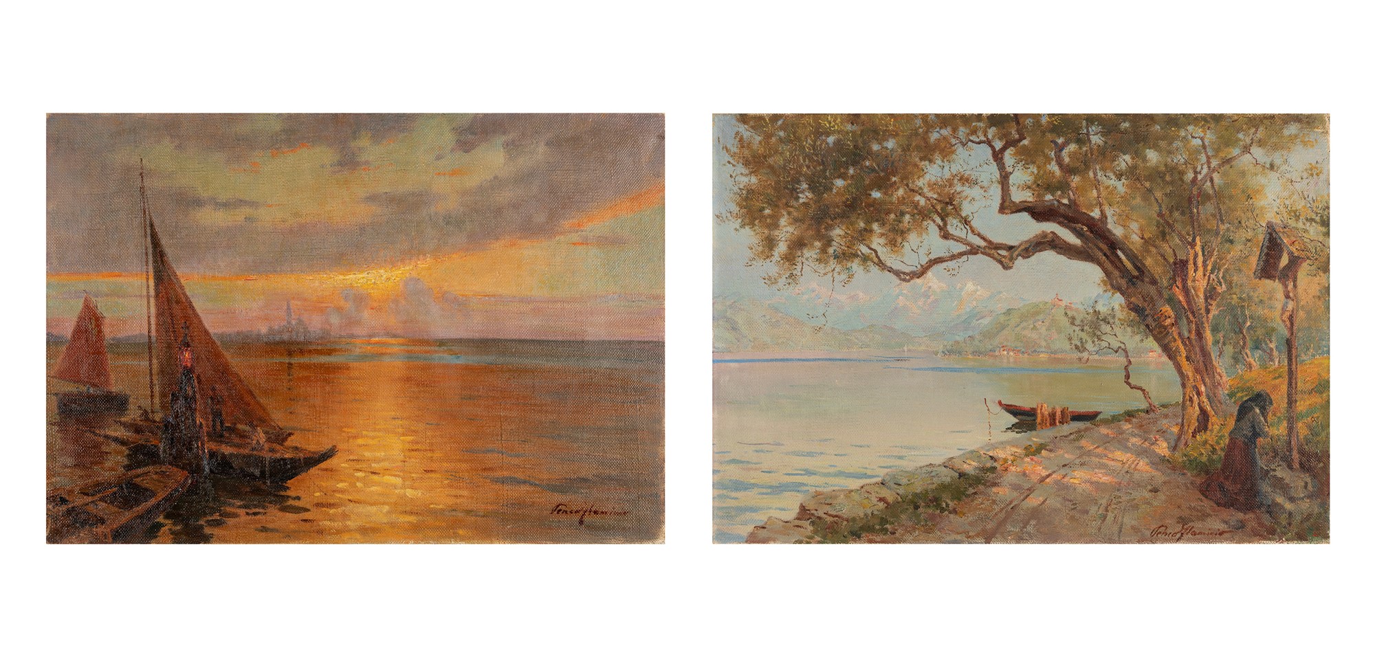 Flaminio Penco (Borgoforte 1892-Iseo 1987) - Lago d'Iseo e Laguna veneta al tramonto