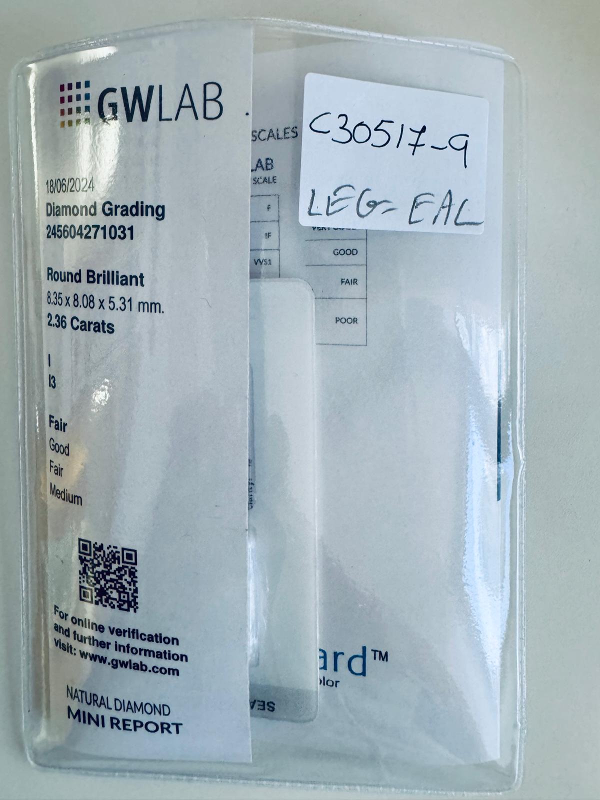 DIAMANTE NATURAL POLISHED 2,36 CARATI COLORE I - PUREZZA I3 - TAGLIO BRILLANTE - CERTIFICATO GW - C30517-9