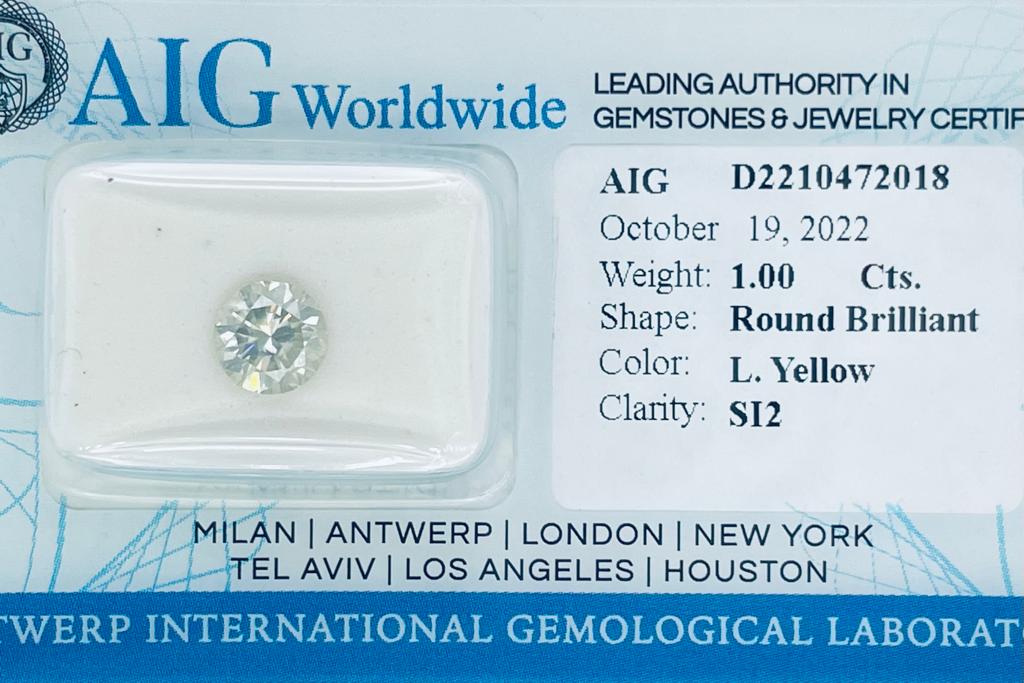 DIAMANTE NATURAL POLISHED 1 CT COLORE GIALLO CHIARO - PUREZZA SI2 - TAGLIO BRILLANTE - CERTIFICATO AIG - C21008-8