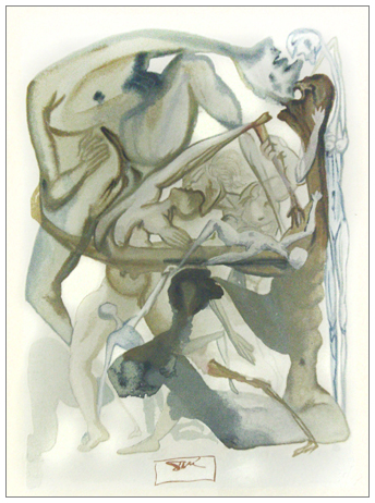 SALVADOR DALI’ Figueres (Spagna) 1904 – 1989 Nel Limbo oscuro – Inferno Tav....