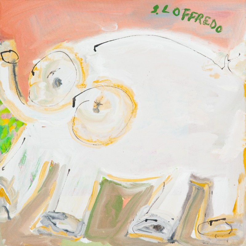 Silvio Loffredo (Parigi 1920) ELEFANTE Olio su tela, cm. 50x50 Firmato in alto a destra. Sul verso: firma.
