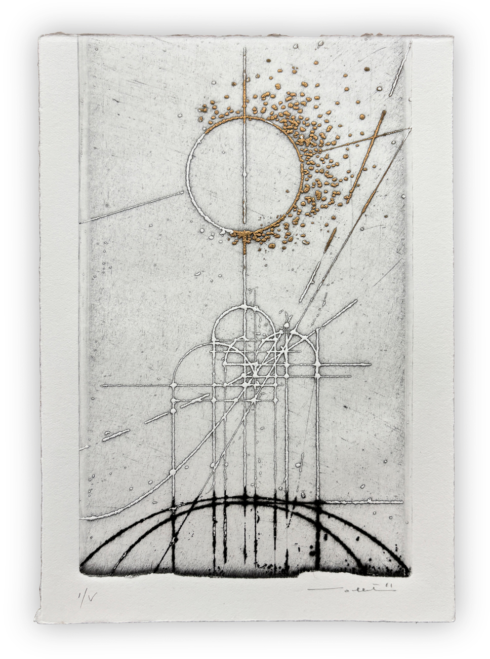 Firma e numerazione (Esemplare I/V) a matita al fronte
