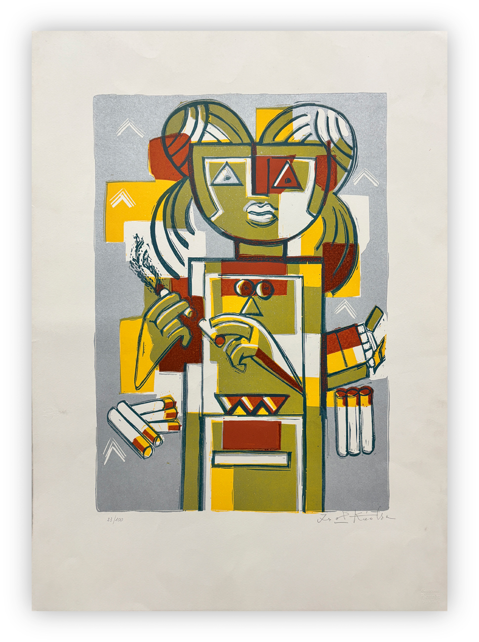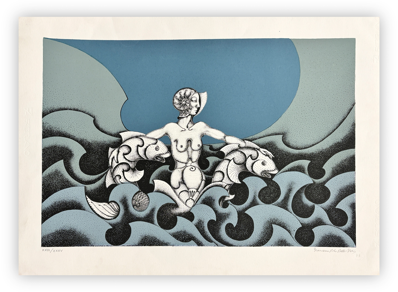 Firma e numerazione (Esemplare 23/100) a matita al fronte