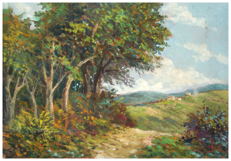 MILLUS (Mauro Illusi) Livorno 1925 – 1992 Senza titolo Olio su juta 50 x 70. Firma in b. a d.; sul verso firma e località.