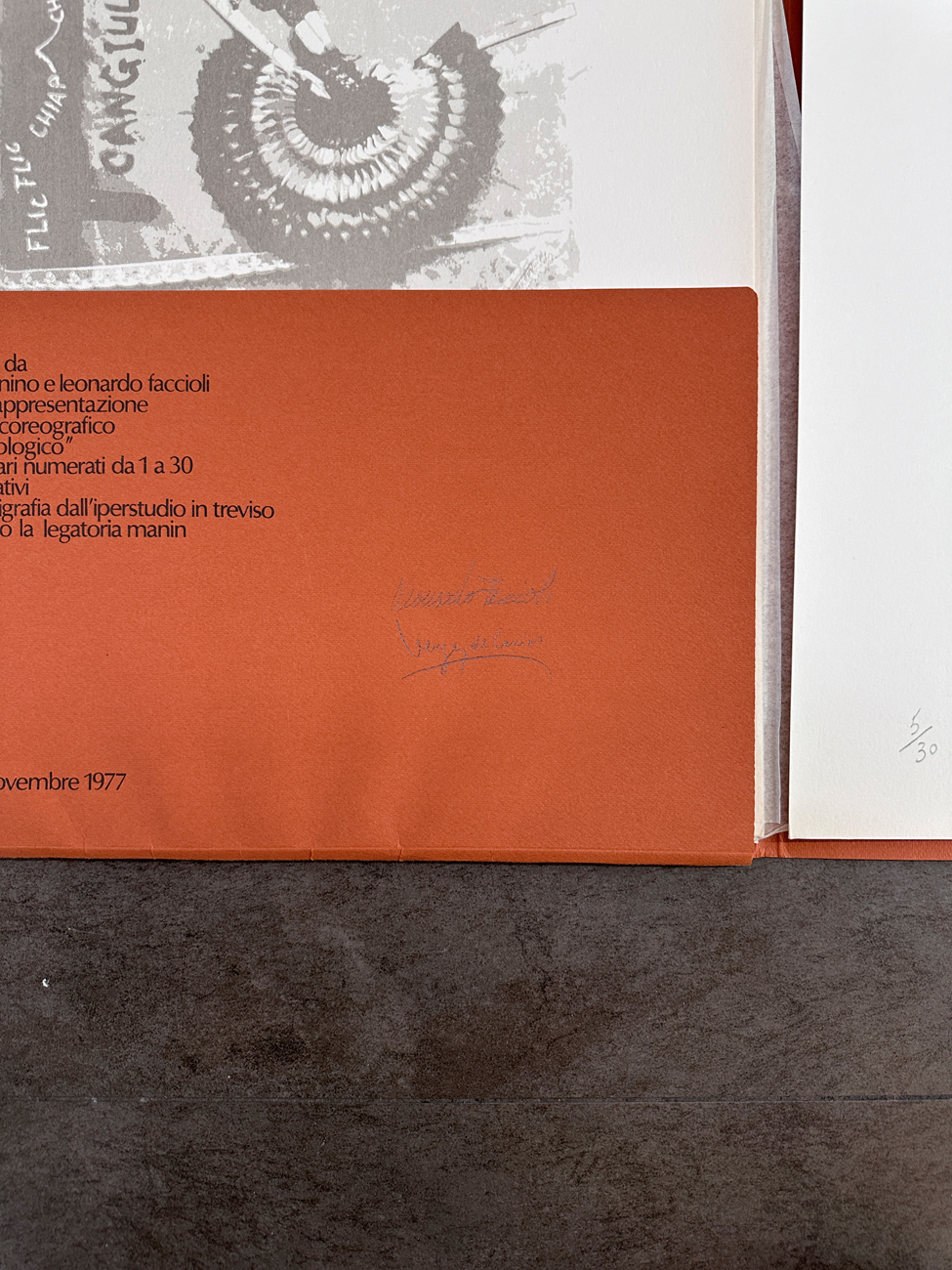 Firma di Faccioli e De Canino a matita sulla cartella