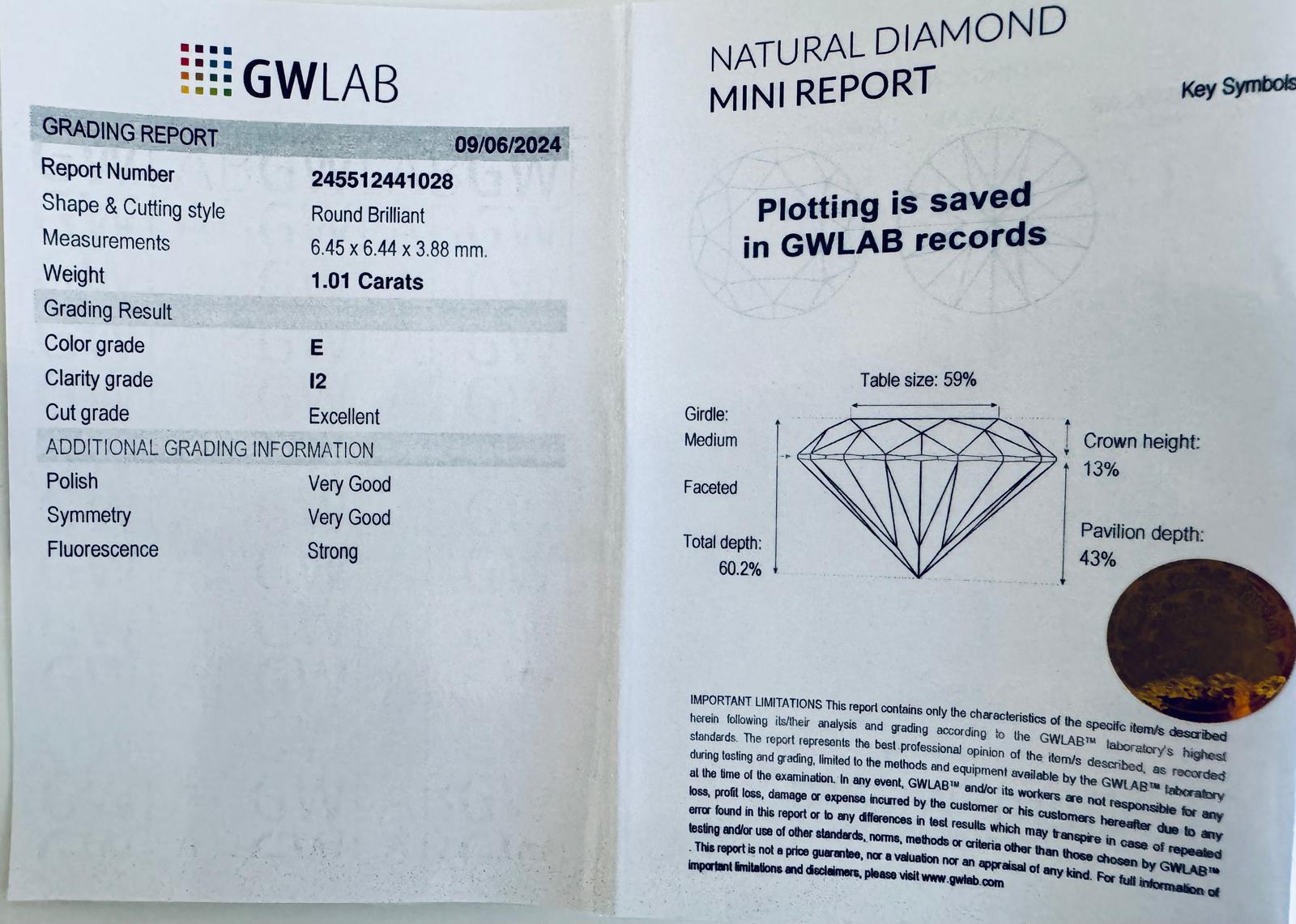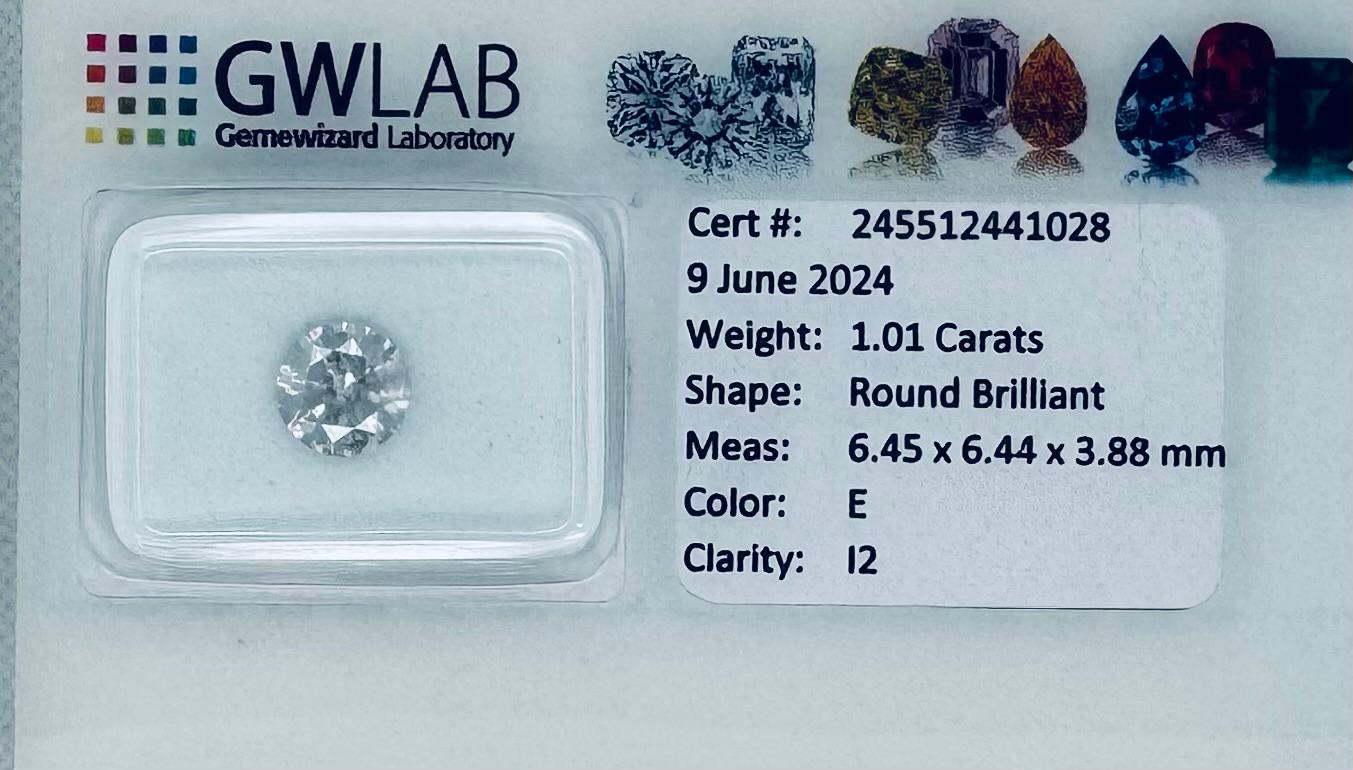 DIAMANTE NATURAL POLISHED 1,01 CARATI COLORE E - PUREZZA I2 - TAGLIO BRILLANTE - CERTIFICATO GW - C40505-2