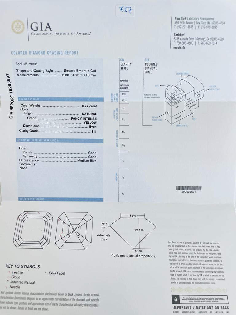 DIAMANTE 0,77 CT FANCY GIALLO INTENSO , UNIFORME - SI1 - GIA - HR20901-15