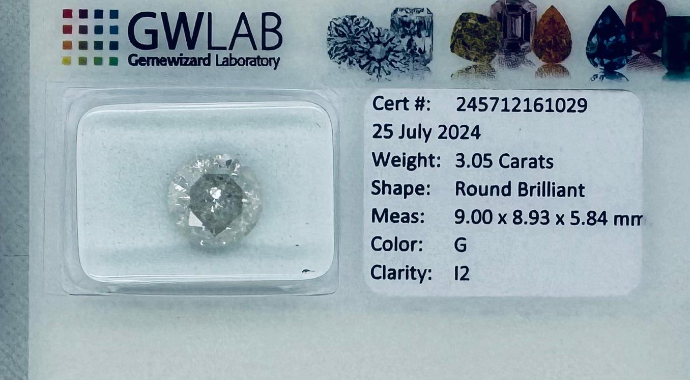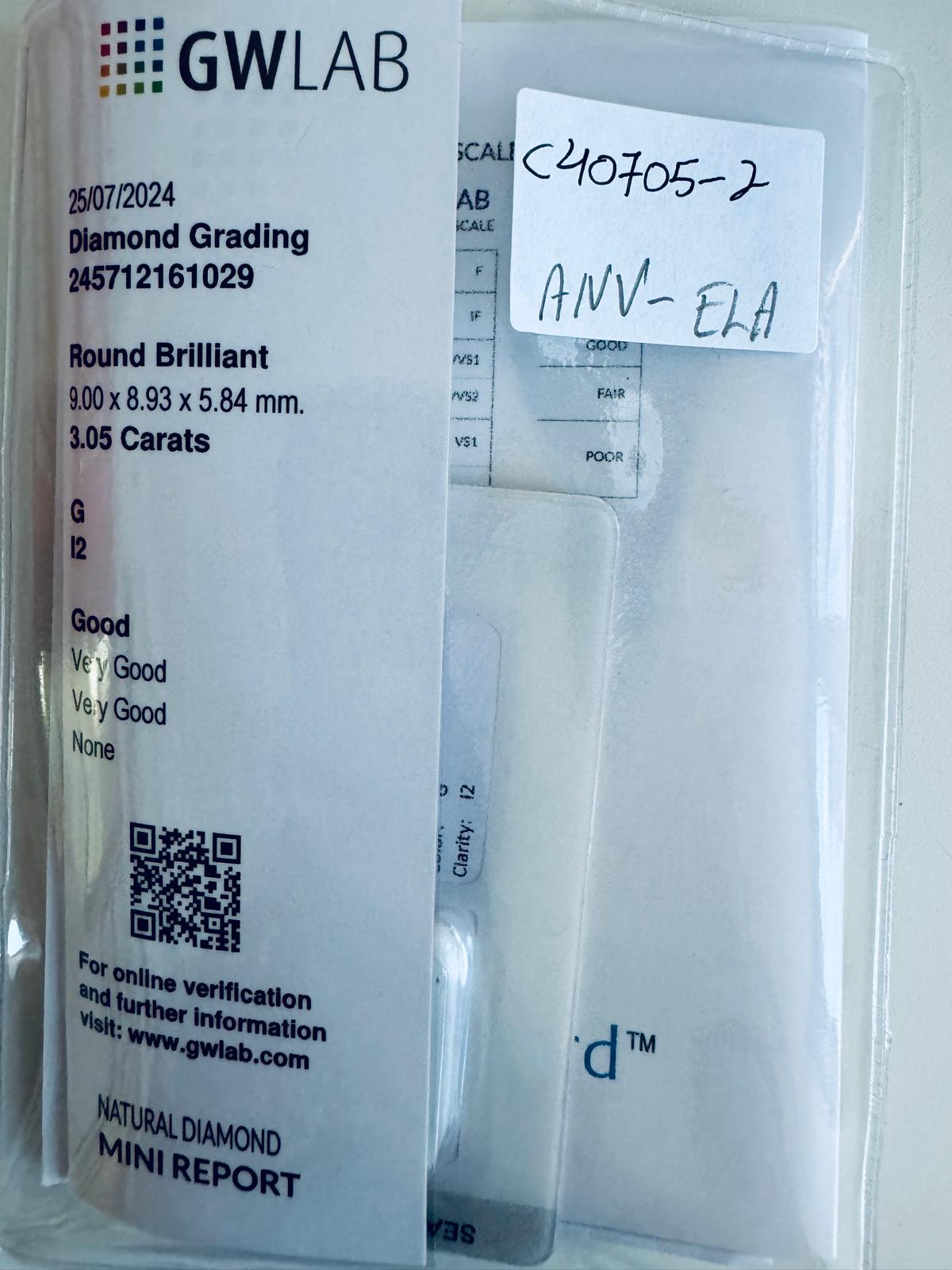 DIAMANTE NATURAL POLISHED 3,05 CARATI COLORE G - PUREZZA I2 - TAGLIO BRILLANTE - CERTIFICATO GW - C40705-2
