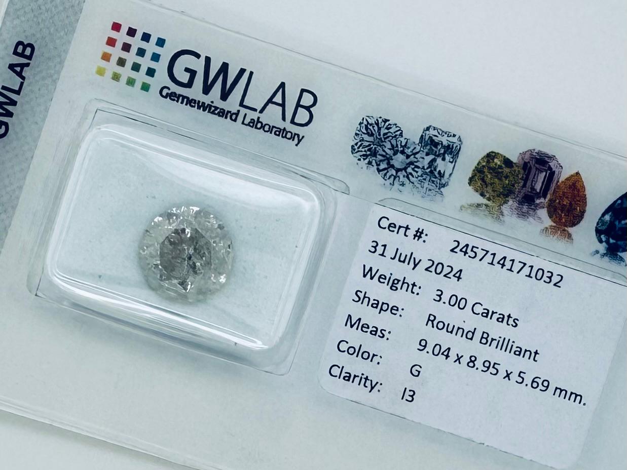 DIAMANTE NATURAL POLISHED 3 CARATI COLORE G - PUREZZA I3 - TAGLIO BRILLANTE - CERTIFICATO GW - C40705-15