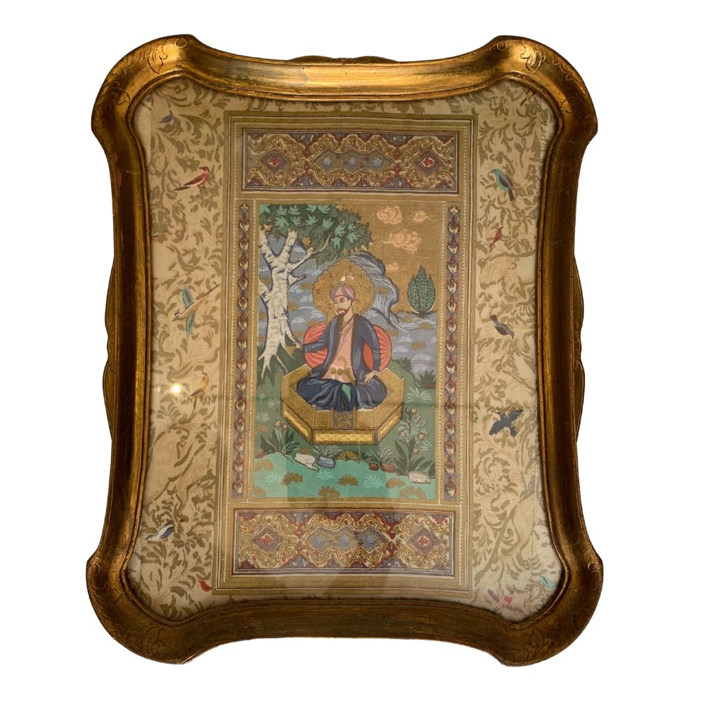 Raffigurante sultano seduto. Con cornice e vetro. Lotto pendant del precedente.