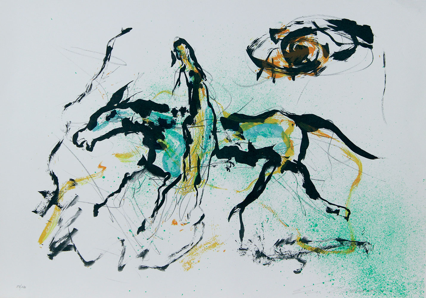 Treccani Ernesto Uomo a cavallo litografia su carta, cm. 53x75, es. 58/120...