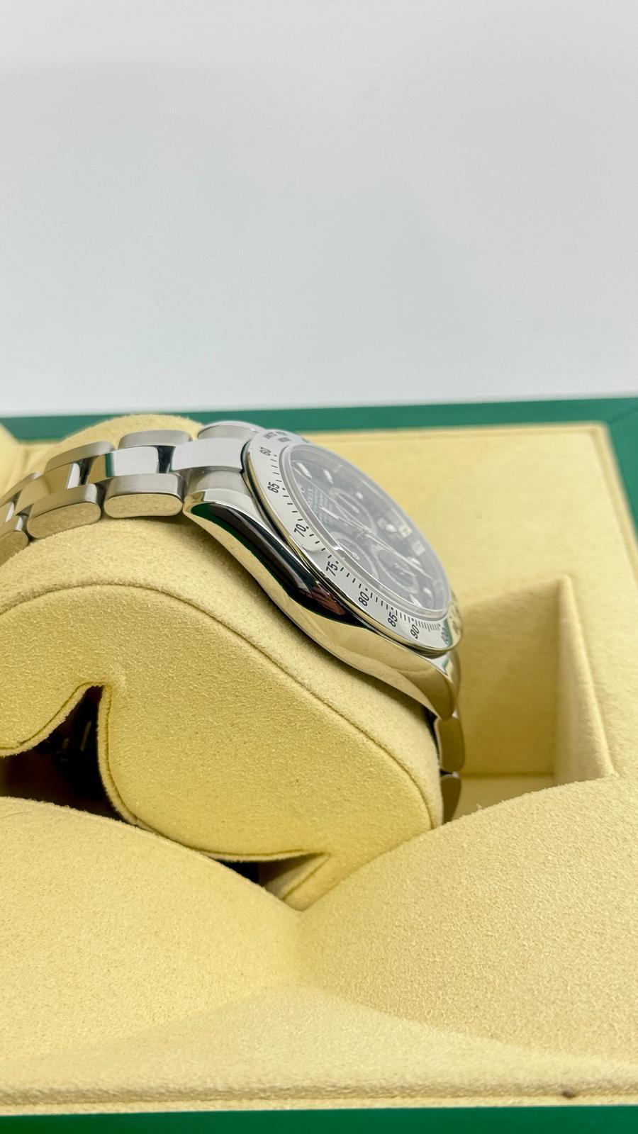 Marca Rolex Modello (Orologio) Daytona Numero di referenza 116520 chromalight Carica Automatico Materiale della cassa Acciaio Materiale cinturino Acciaio Anno di produzione 2014 documenti originali Rolex, no box Carica Automatico Cassa Materiale della cassa Acciaio Diametro 40 mm Impermeabile 10 ATM Materiale lunetta Acciaio Vetro Vetro zaffiro Quadrante Nero Cinturino Materiale cinturino Acciaio Colore cinturino Acciaio Chiusura Déployante Materiale chiusura Acciaio