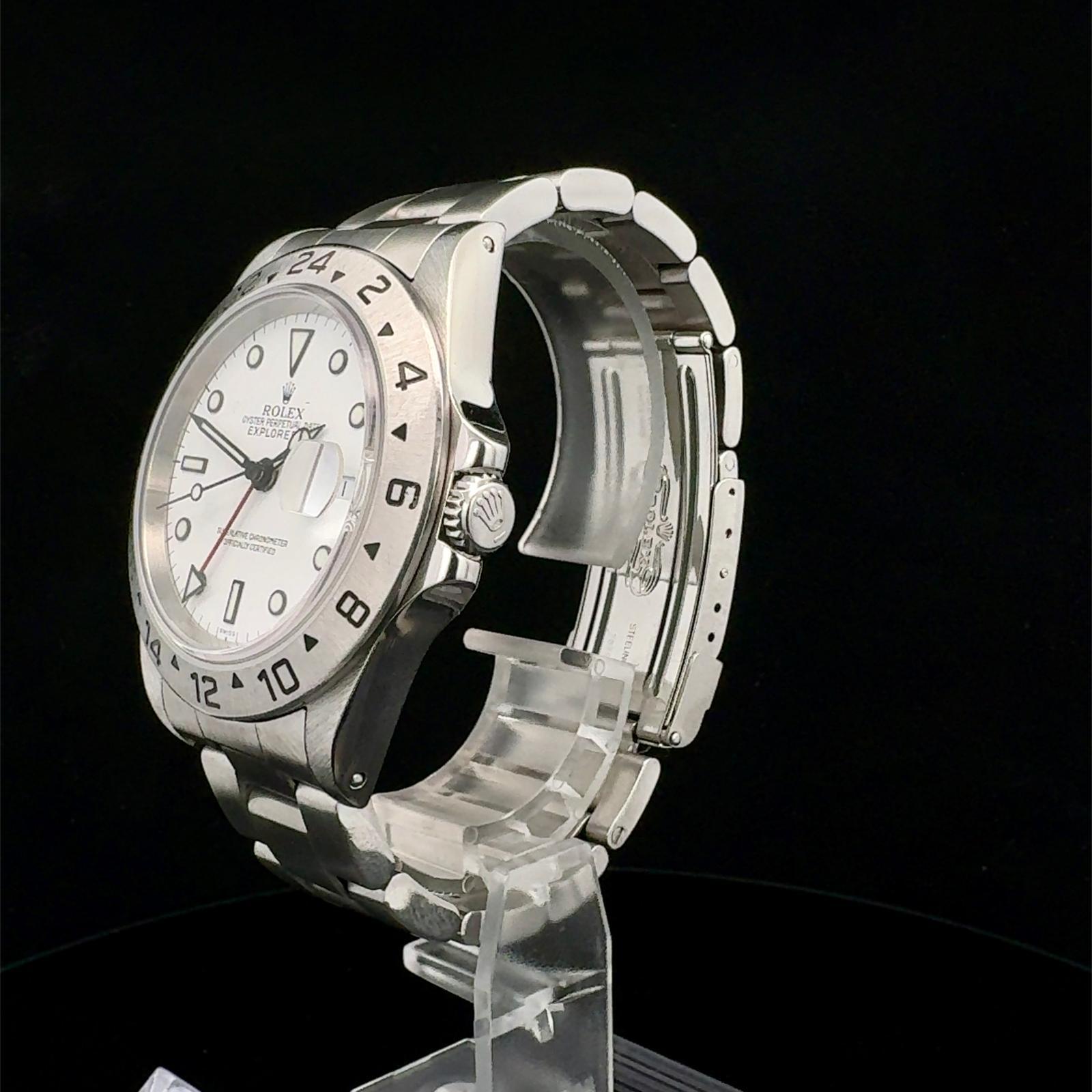 Marca Rolex Modello (Orologio) Explorer II Numero di referenza 16570 only swiss Carica Automatico Materiale della cassa Acciaio Materiale cinturino Acciaio Anno di produzione 99/2000 Corredo documenti originali Rolex, no box Calibro Carica Automatico Materiale della cassa Acciaio Diametro 40 mm Impermeabile 10 ATM Materiale lunetta Acciaio Vetro Vetro zaffiro Quadrante Bianco Numeri sul quadrante Senza numeri Cinturino Materiale cinturino Acciaio Colore cinturino Acciaio Chiusura Déployante Materiale chiusura Acciaio