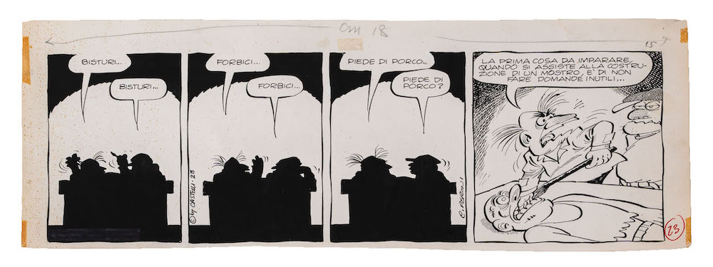 PEROGATT(1929 - 2011)Zio Boris - 3 strisceChina su cartaOgni striscia misura 16,5 x 49,5 cm circaOgni striscia è firmata da Carlo Peroni e Alfredo Castelli