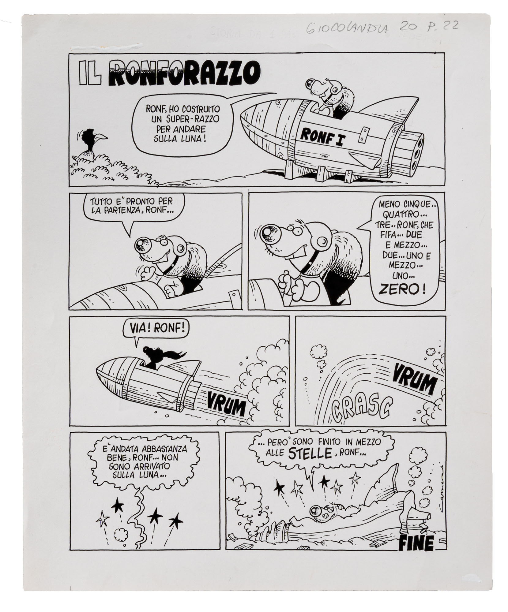 ADRIANO CARNEVALI(1981)Il ronforazzoChina su carta36,8 x 30 cmStoria autoconclusiva in una tavolaFirmata in basso a destra