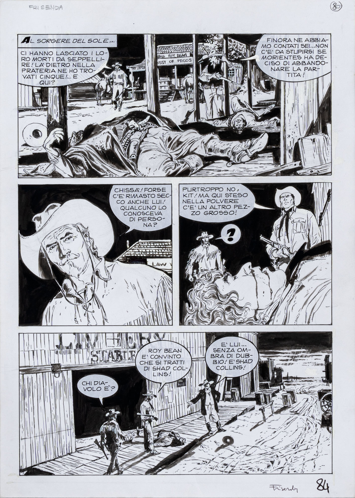 PASQUALE FRISENDA(1970)Tex n. 635 - Il segreto del giudice Bean, pagina 842013China su carta35 x 25 cmFirmata in basso a destra
