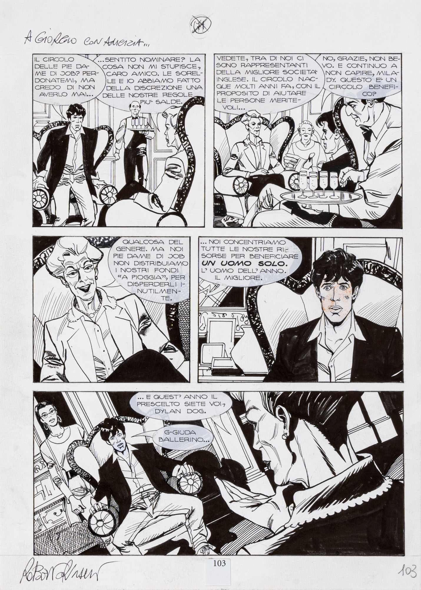 ROBERTO RINALDI(1964)Dylan Dog - Almanacco della paura, pagina 1032000China su carta34,5 x 24,5 cmFirmata in basso a sinistra e dedicata in alto a sinistra