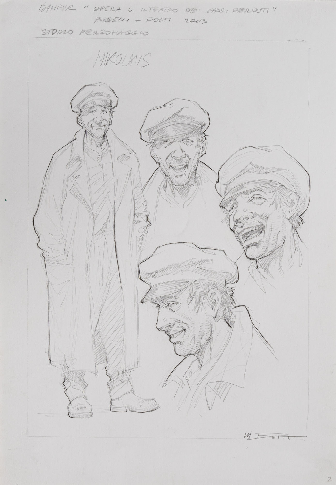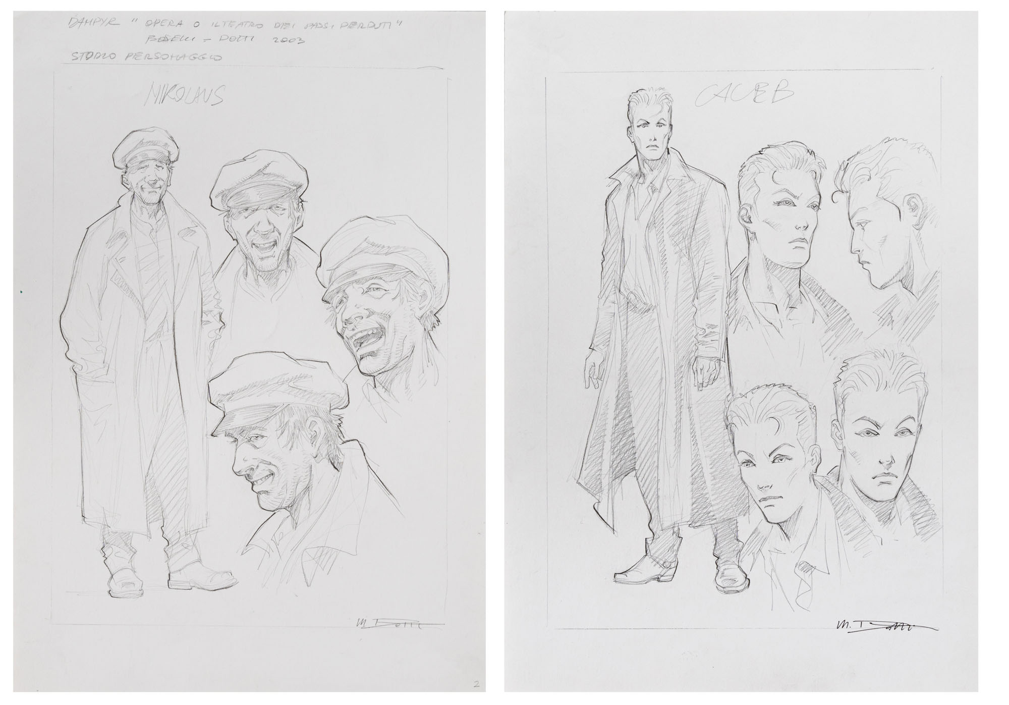 MAURIZIO DOTTI(1958)Dampyr - Studi personaggi, lotto multiplo2003Matita su cartaOgni tavola misura 36 x 25,5 cmStudi per i personaggi Nikolaus e Caleb, per Opera o Il teatro dei passi perdutiOgni tavola è firmata in basso a destra