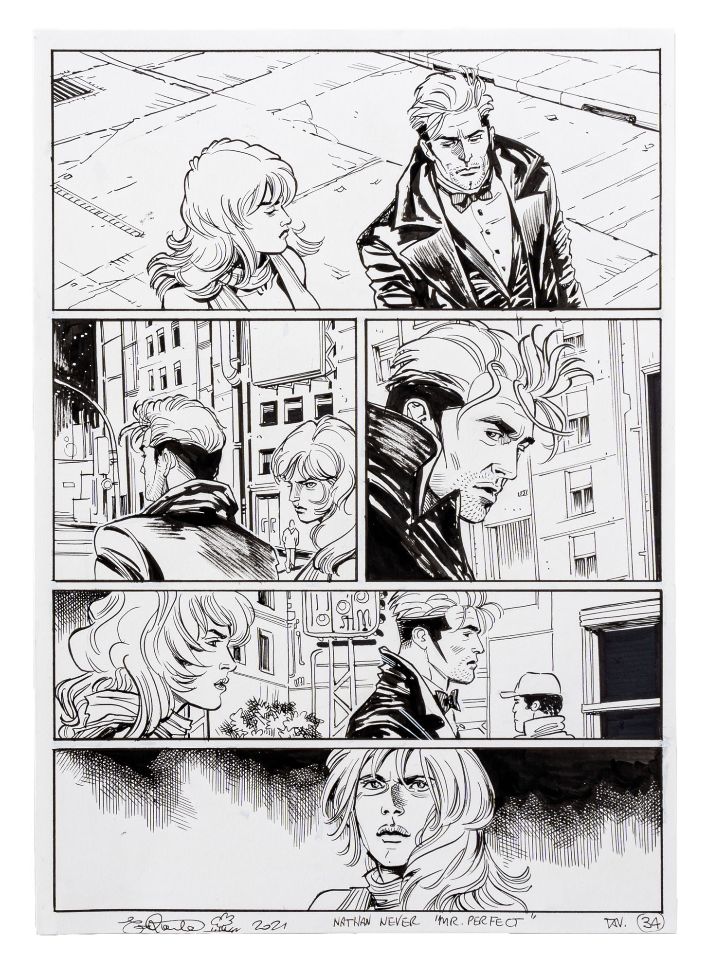 ELENA PIANTA(1973)Nathan Never n. 366 - Mr. Perfect, pagina 342021China su carta41 7 x 29,5 cmFirmata e datata in basso a sinistra, titolata in basso al centro