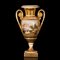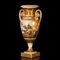 Vaso biansato in porcellana a fondo oro e decoro policromo di paesaggio agreste entro riserva centrale al corpo ovoidale.
