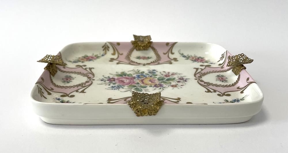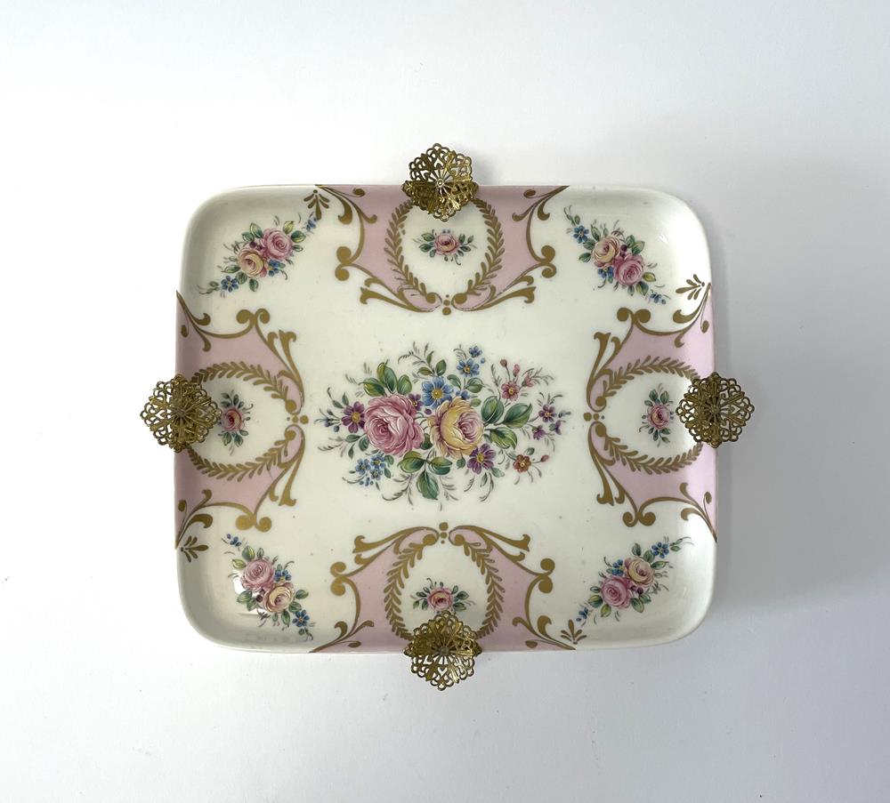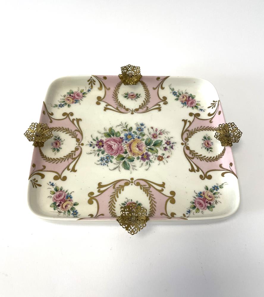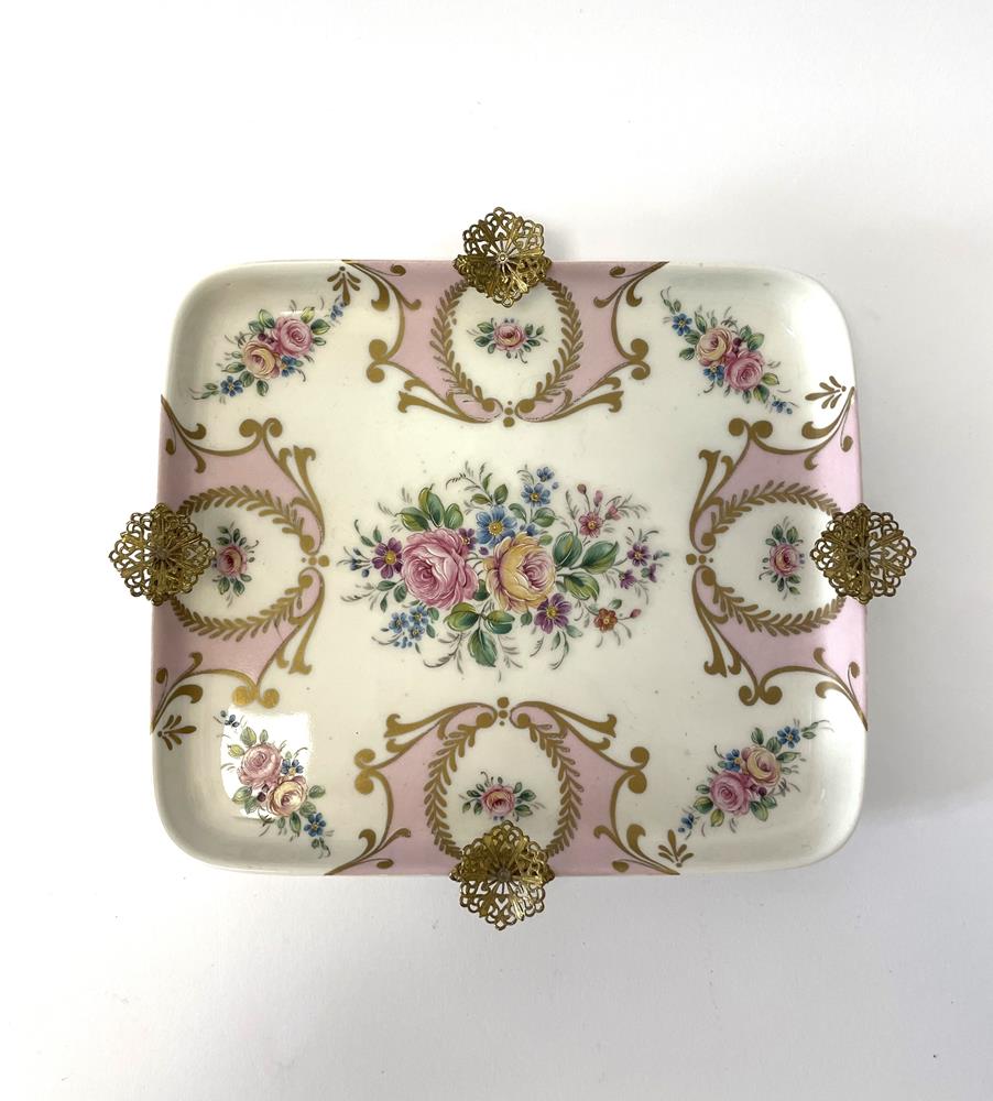 Lot 81 | Vassoio portabonbon in ceramica Limoges impreziosito da inserti in metallo dorato