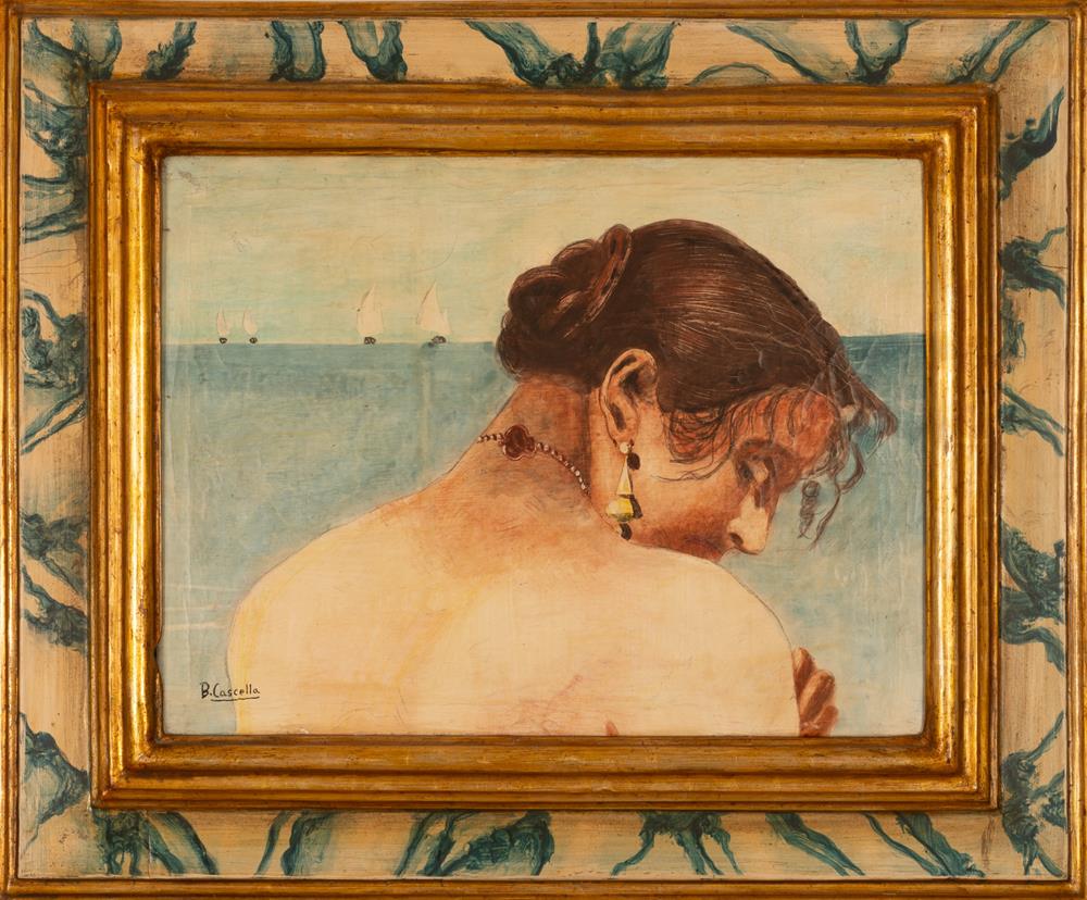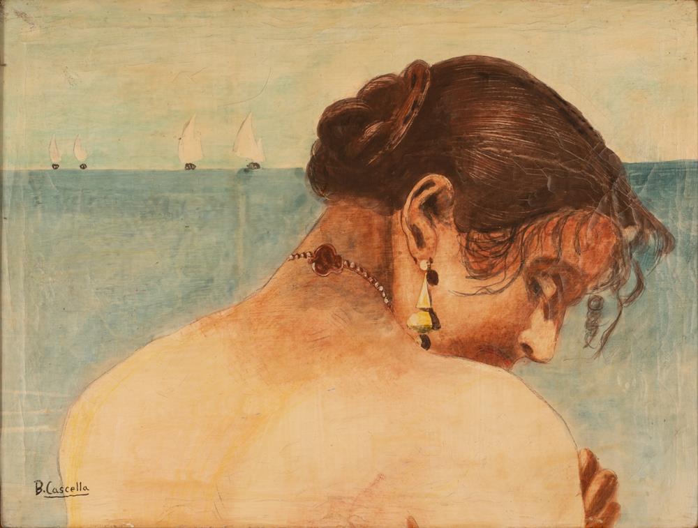 Nudo di giovane donna di spalle con paesaggio marino sullo sfondo Basilio Cascella
